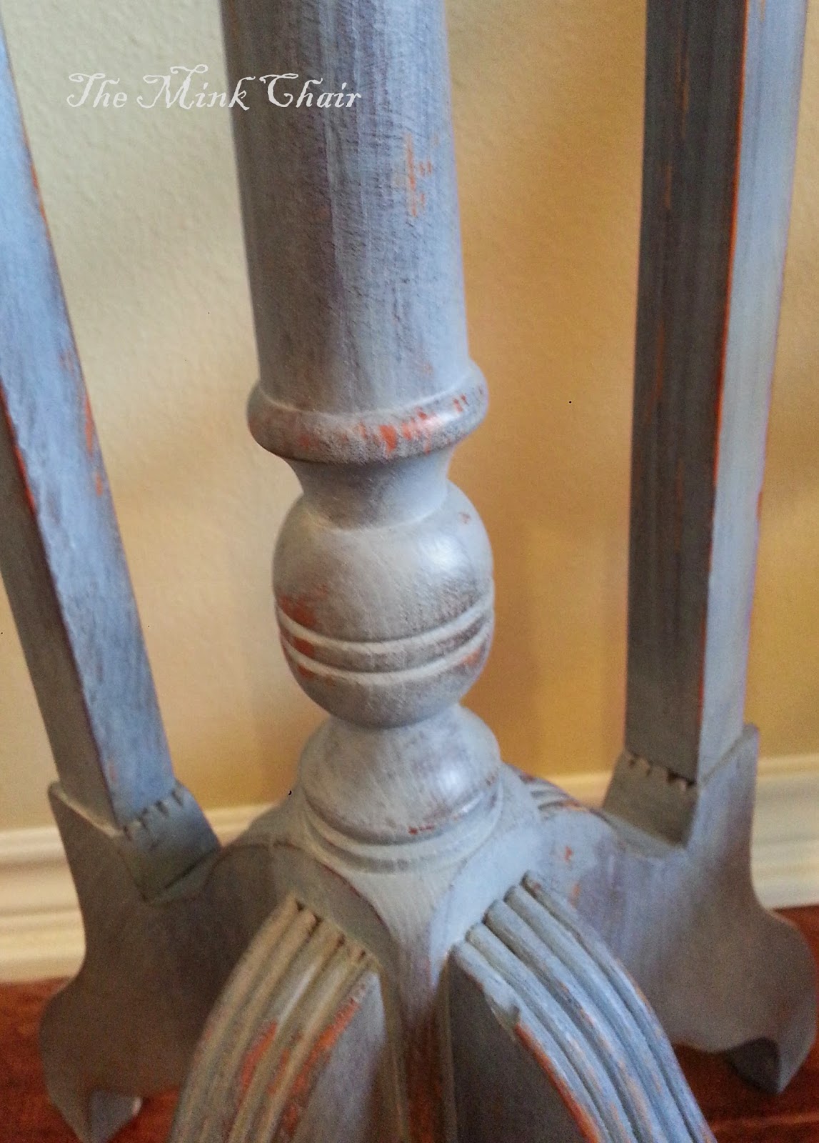 Websters Chalk Paint Powder is mixed with latex paint to make a super durable, easy to use chalk paint. I started with a good coat of brown paint followed by coat of gray, applied as a wash and then wet distressed with a wash cloth. I love the way the brown paint peaks out of the gray at all the right places.